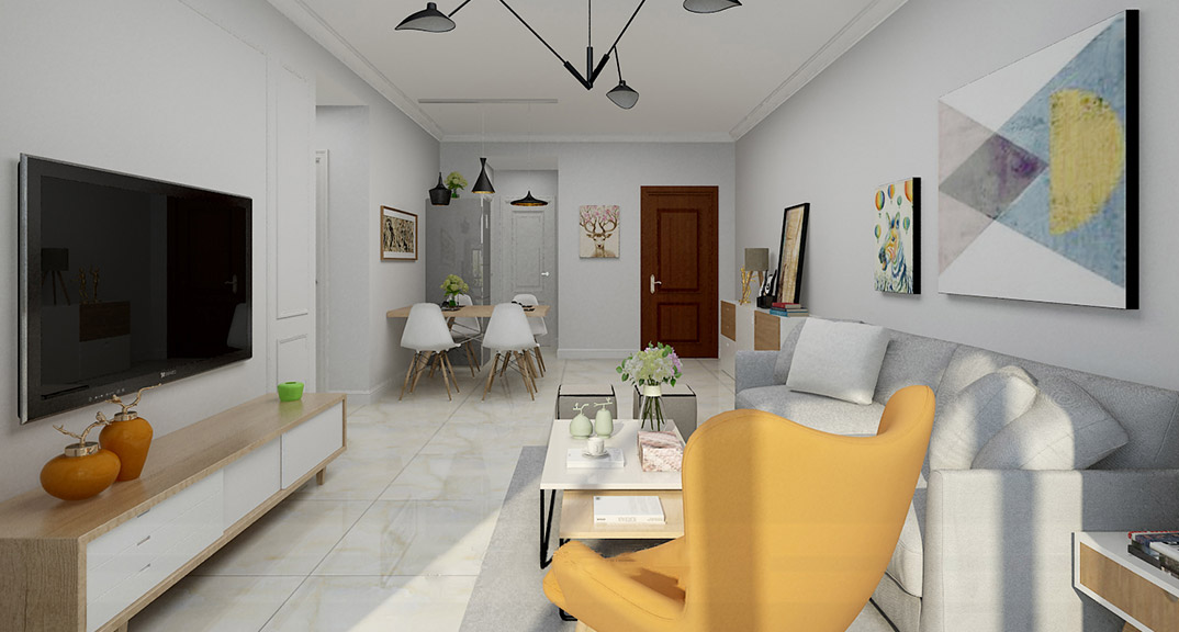永利國際87㎡兩室兩廳客廳現(xiàn)代風(fēng)格裝修案例效果圖