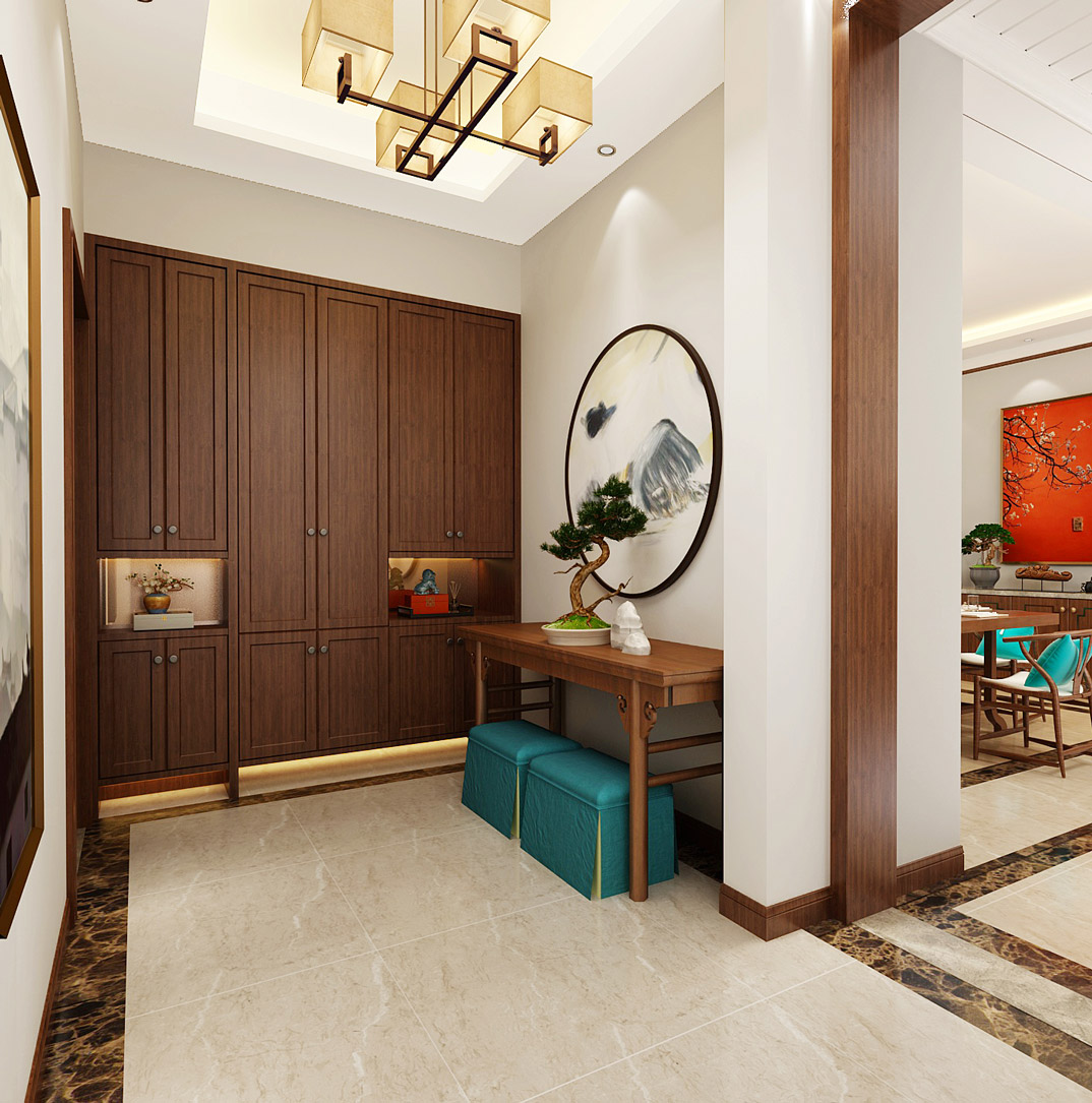 市直三區(qū)260㎡平層走廊新中式風(fēng)格裝修案例效果圖