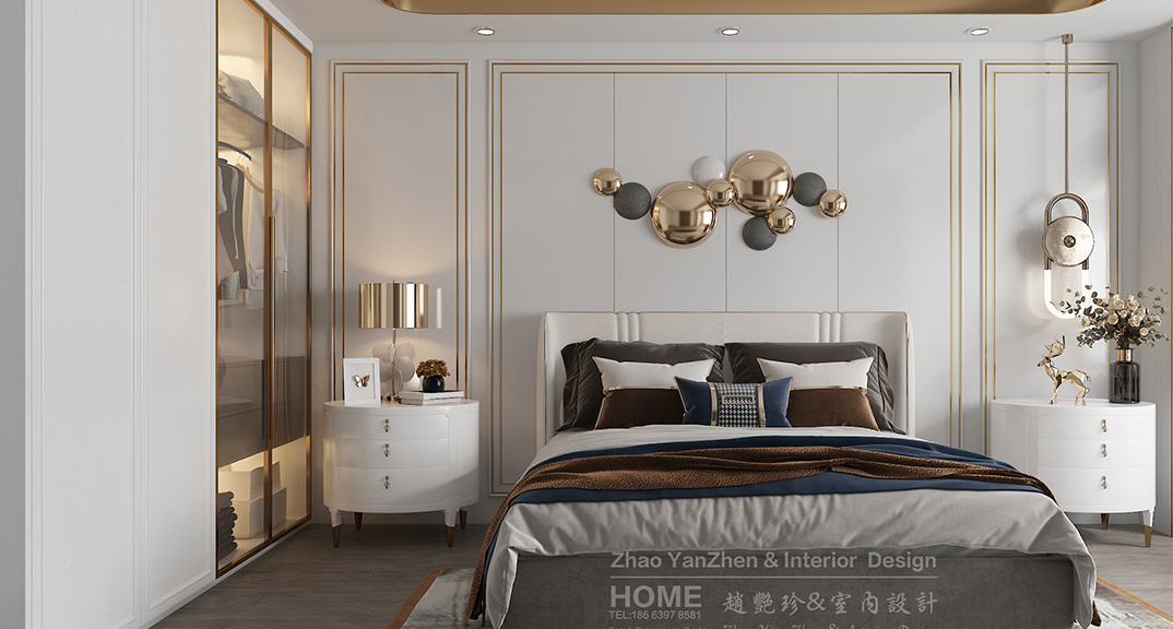 璞麗豪庭287㎡疊拼上疊二樓主臥美式輕奢風(fēng)格裝修案例效果圖