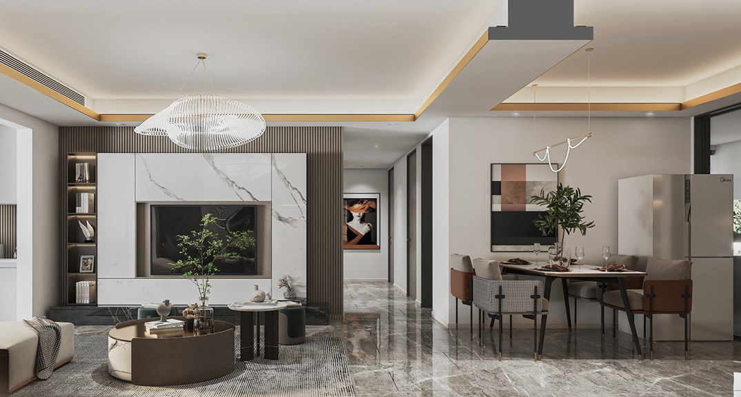 盛世華府138㎡四室兩廳客餐廳電視現(xiàn)代風(fēng)格裝修案例效果圖
