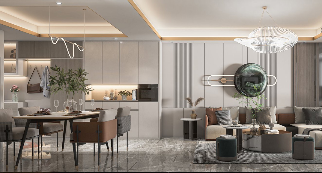 盛世華府138㎡四室兩廳客餐廳沙發(fā)現(xiàn)代風(fēng)格裝修案例效果圖
