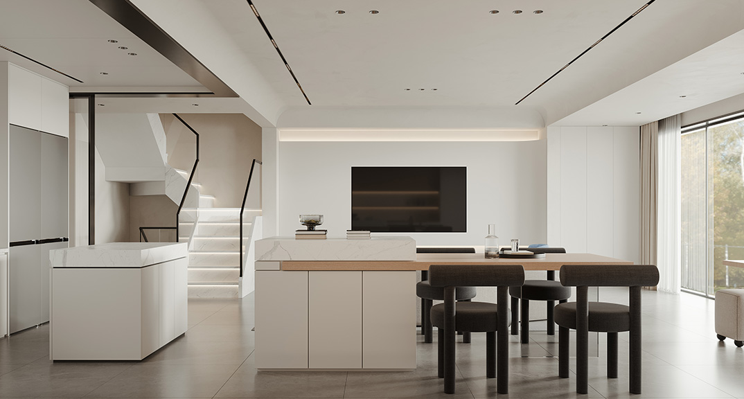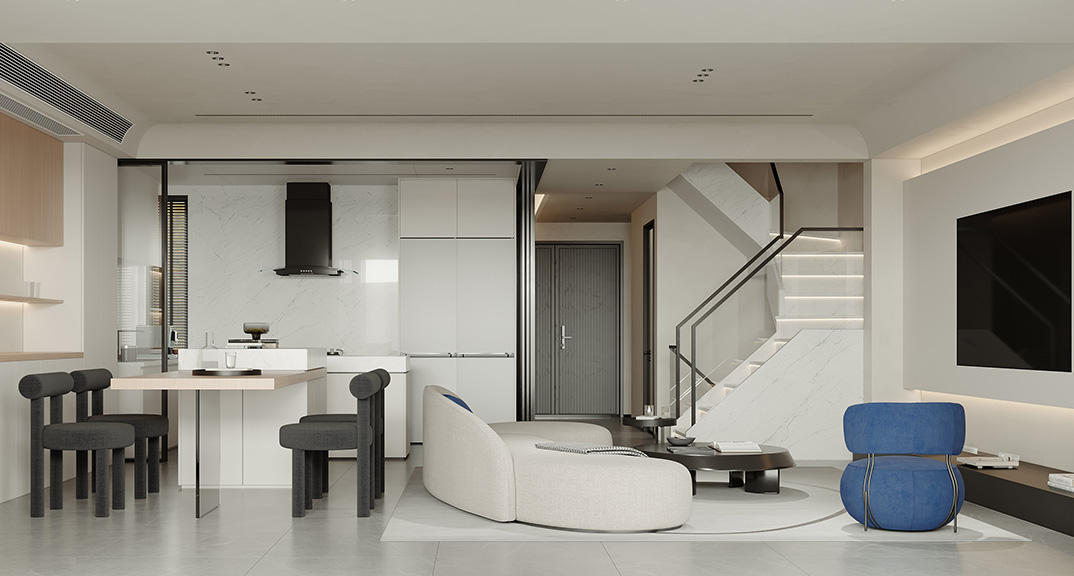 紫荊閣300㎡別墅下疊客廳新中式風(fēng)格裝修案例效果圖