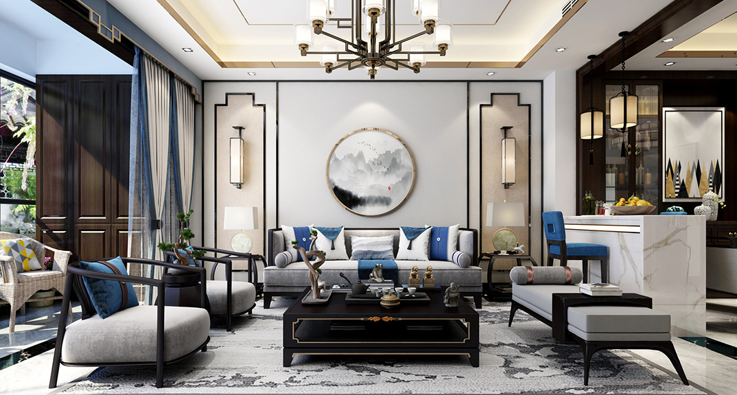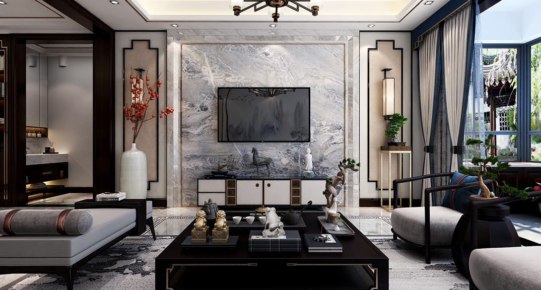 安泰名筑190㎡四室兩廳客廳新中式風(fēng)格裝修案例效果圖