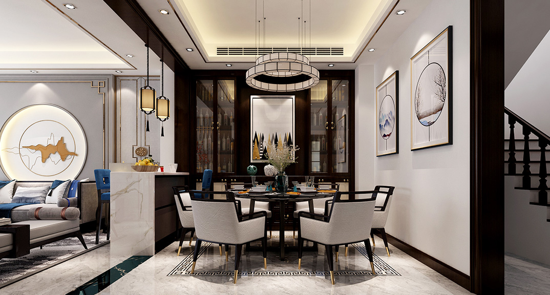 安泰名筑190㎡四室兩廳走廊新中式風(fēng)格裝修案例效果圖