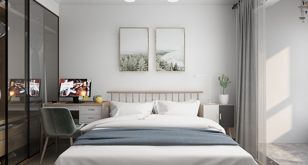 保利時(shí)代98㎡三室兩廳臥室原木風(fēng)戶型研發(fā)效果圖