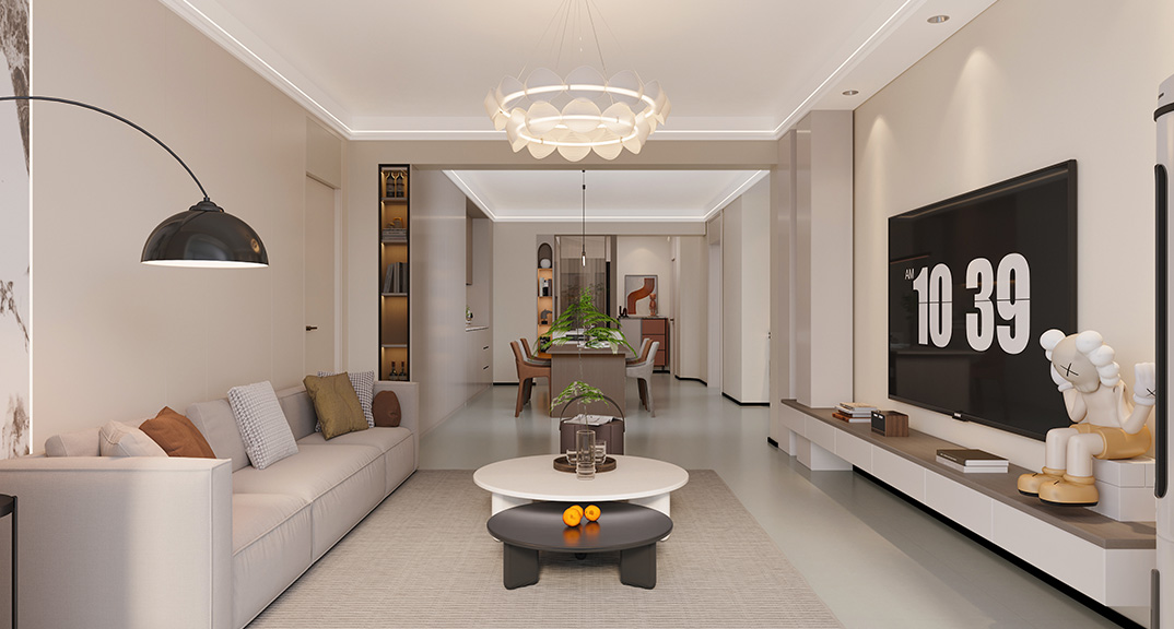 以簡潔、清晰和功能性為特征的室內(nèi)設(shè)計(jì);它主要強(qiáng)調(diào)了空間的簡化和精煉,追求線條簡單、空間通透、色彩明亮、材質(zhì)自然等特點(diǎn),注重形式與功能的結(jié)合。他們希望有一個(gè)時(shí)尚、現(xiàn)代的功能性空間,在整個(gè)空間的設(shè)計(jì)上用了暖灰調(diào)來與簡約的線條感來相呼應(yīng),能改造出一個(gè)通透、流暢的空間感。