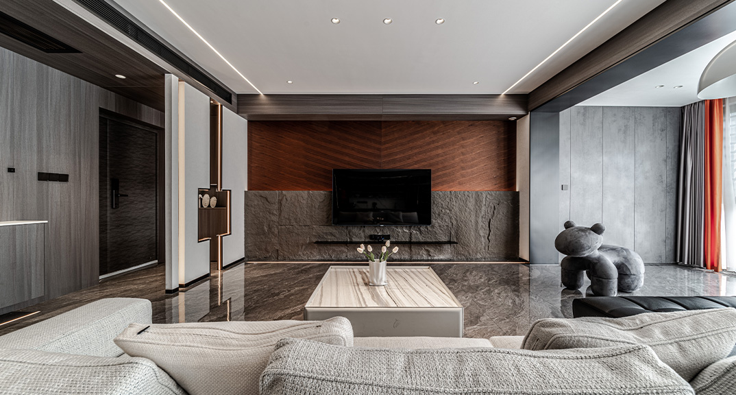 恒大雅苑330㎡平層客廳現(xiàn)代臺式風(fēng)格裝修案例效果圖