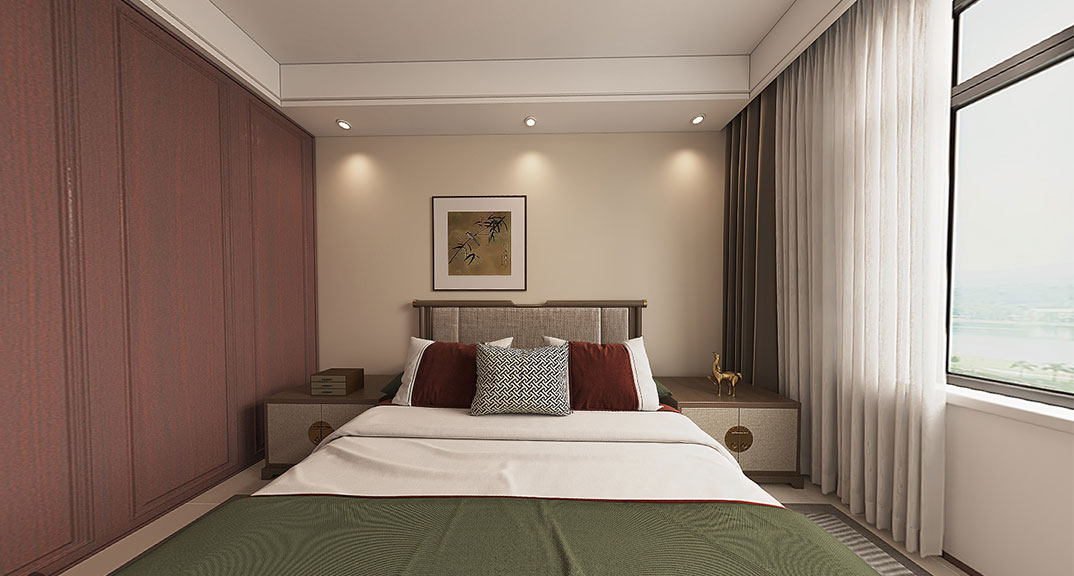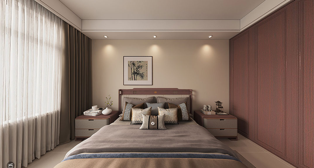 這是一套新中式風(fēng)格,以中國(guó)傳統(tǒng)文化內(nèi)涵為設(shè)計(jì)元素,在室內(nèi)布置、色調(diào)以及家具、陳列的造型等方面,吸取傳統(tǒng)裝飾。中式風(fēng)格的家具對(duì)稱(chēng)、簡(jiǎn)約、樸素富有文化內(nèi)涵,體現(xiàn)主人較高審美與社會(huì)地位。 中式家具裝修風(fēng)格的設(shè)計(jì)多采用簡(jiǎn)潔、硬朗的直線條,不僅迎合了中式家具追求內(nèi)斂、質(zhì)樸的設(shè)計(jì)風(fēng)格,還反映出現(xiàn)代人追求簡(jiǎn)單生活的居住要求,使中式風(fēng)格更加實(shí)用,更富有現(xiàn)代感。