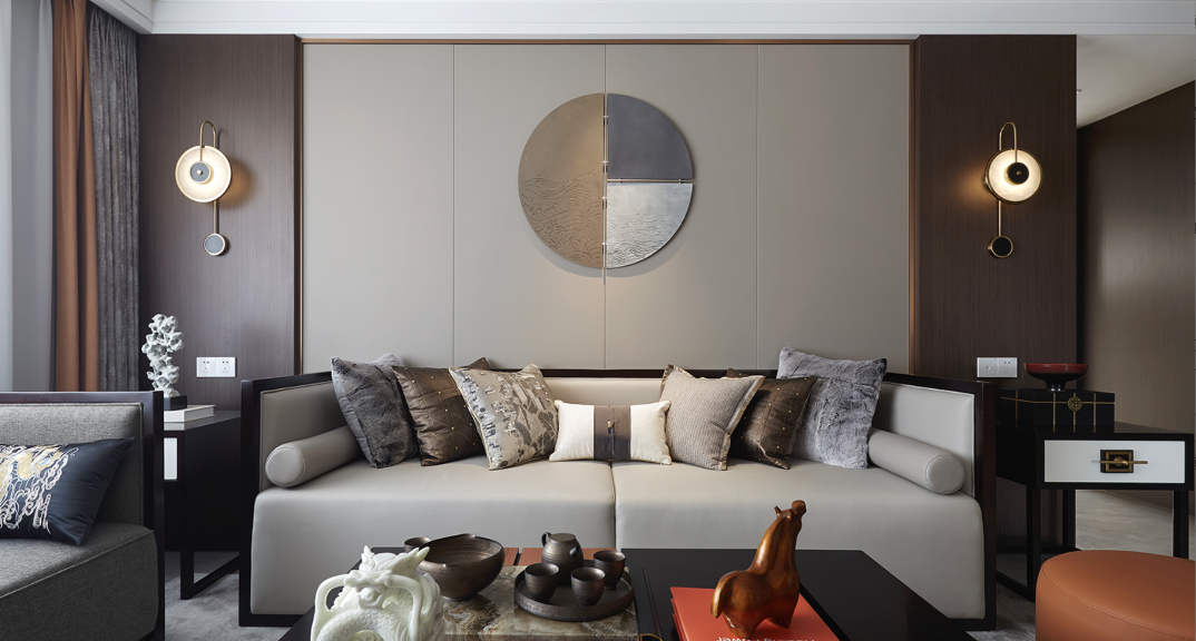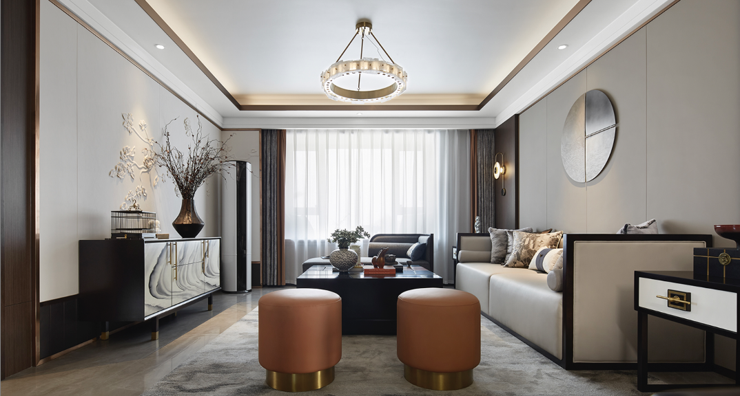 青島裝修效果圖-和達智慧生態(tài)城117㎡-新中式裝修設計-新中式效果圖-東方家園裝飾