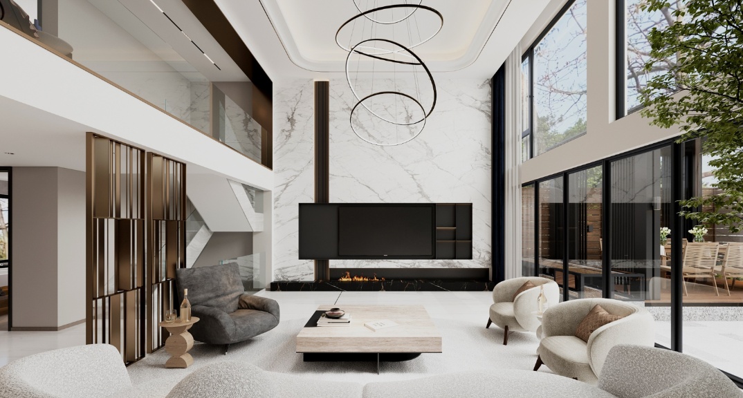 青島別墅裝修-保利紅島灣裝修-現(xiàn)代輕奢風(fēng)格-青島東方家園裝飾