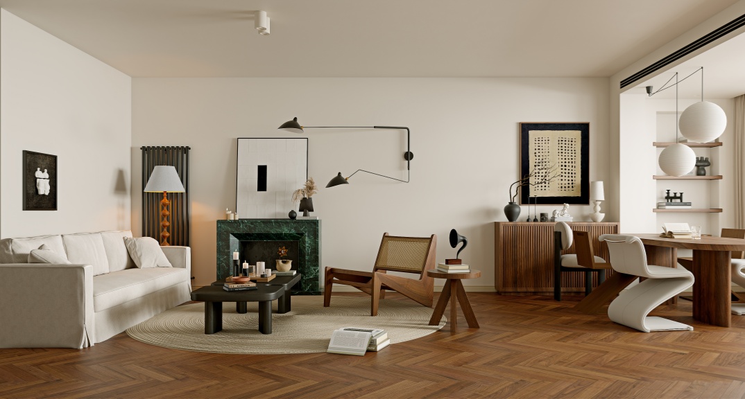 整體設(shè)計(jì)以舒適宜居為出發(fā)點(diǎn),將中古風(fēng)的優(yōu)雅韻味與現(xiàn)代生活的便捷實(shí)用完美融合,為業(yè)主打造一個(gè)充滿溫度與質(zhì)感的理想居所。