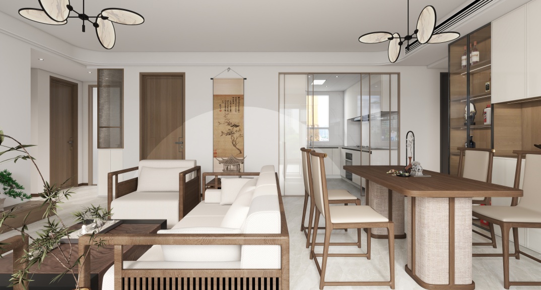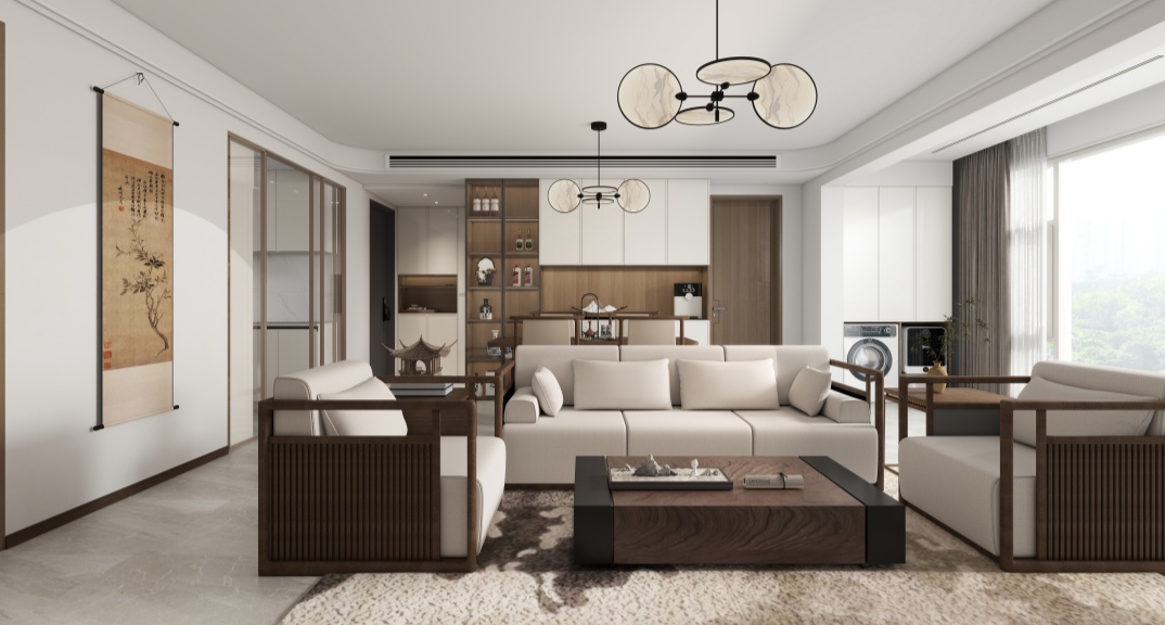 青島裝修公司-森林公園效果圖-新中式風(fēng)格-東方家園裝飾